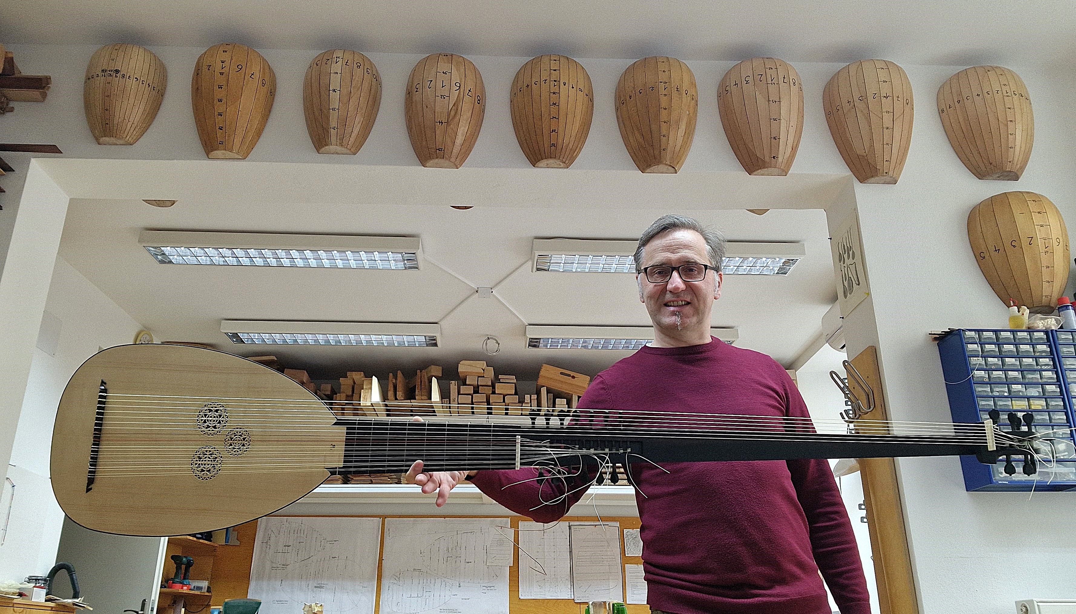 Ich bin ein Saiten- und Streichinstrumentenbau-Meisterbetrieb. Auf den Neubau von Renaissance und Barockzupfinstrumente spezialisiert. Alle angebotenen Instrumente sind Einzelstücke. Um die jeweiligen Optimierungen in akustischer, klanglicher und haptischer Hinsicht zu dokumentieren habe ich detaillierte digitale Pläne angefertigt.