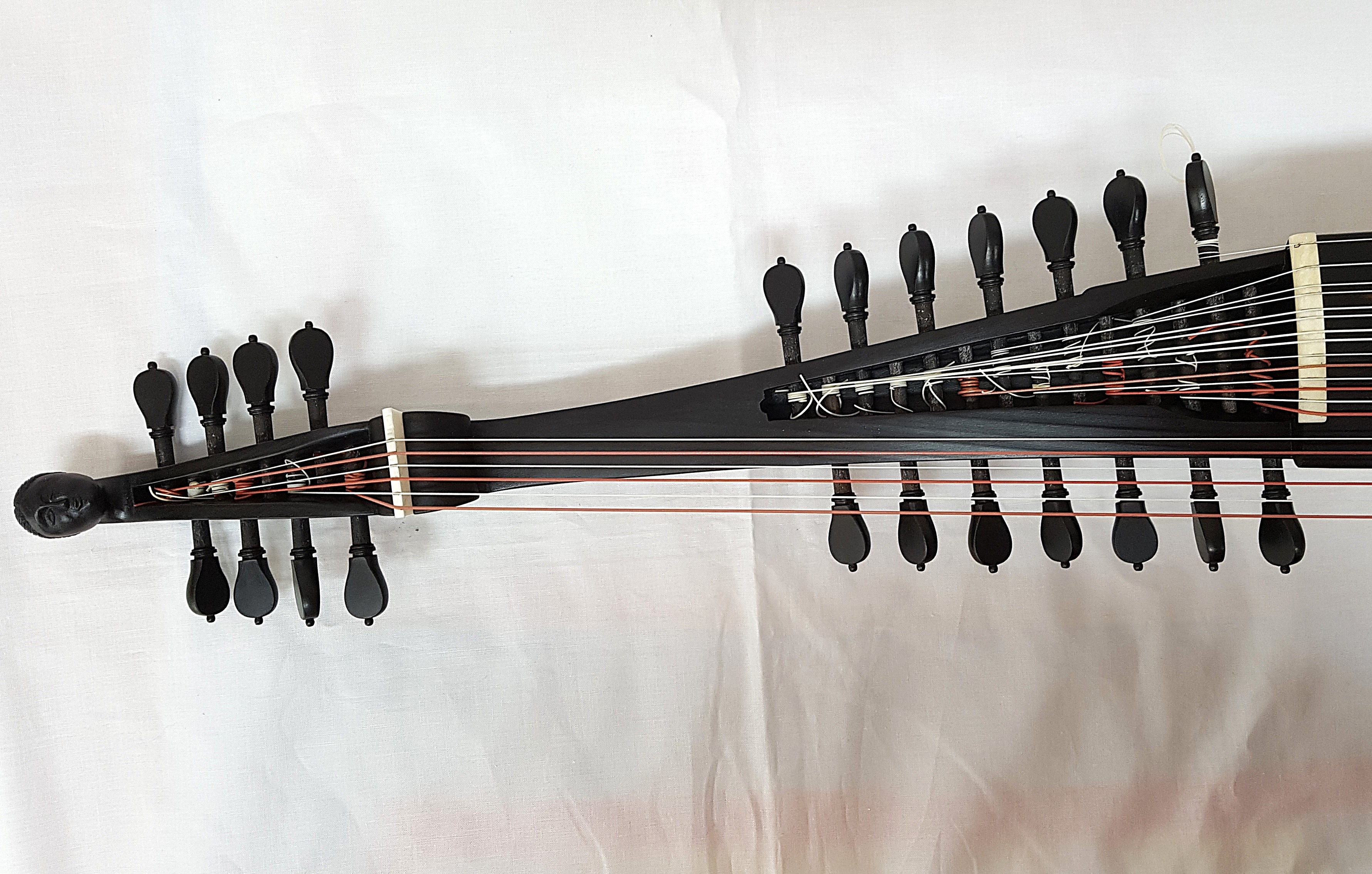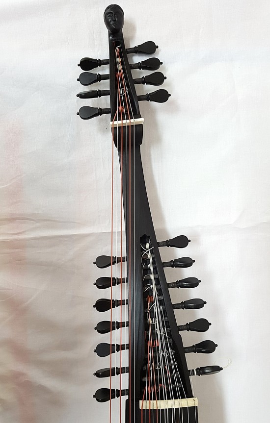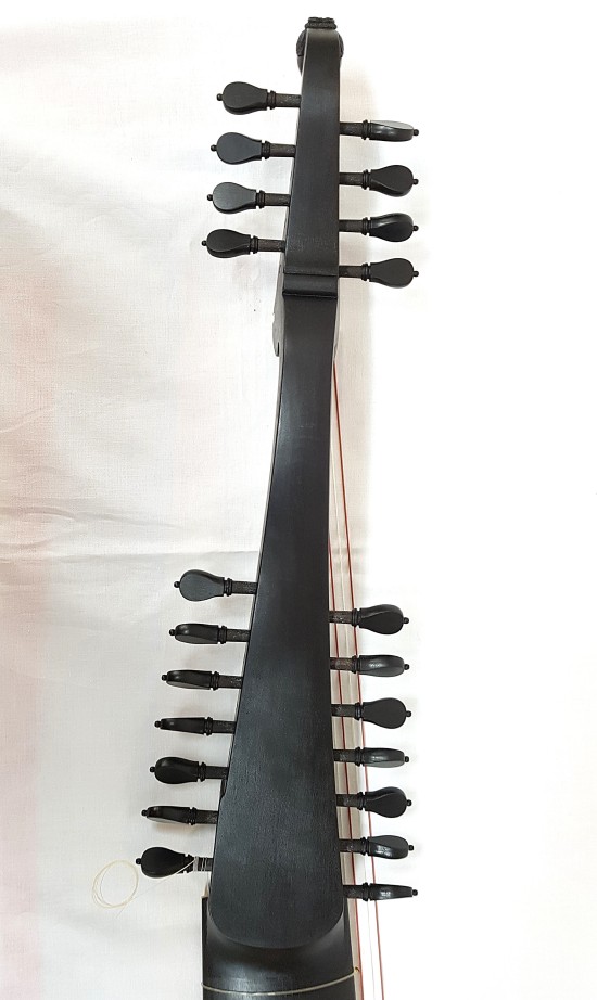 Schwarz gebeizter theorbierter Wirbelkasten
