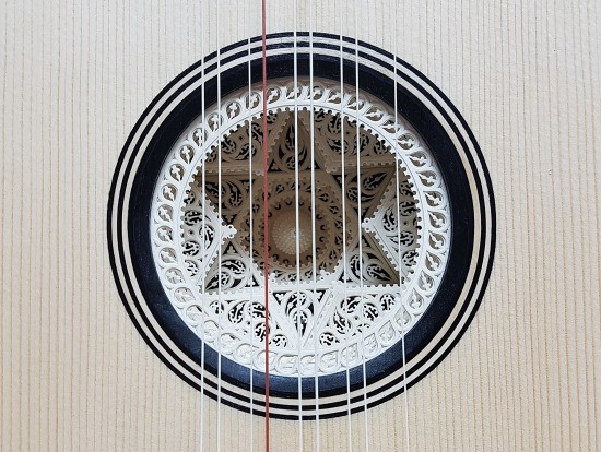 soundhole with more level rose made of parchment