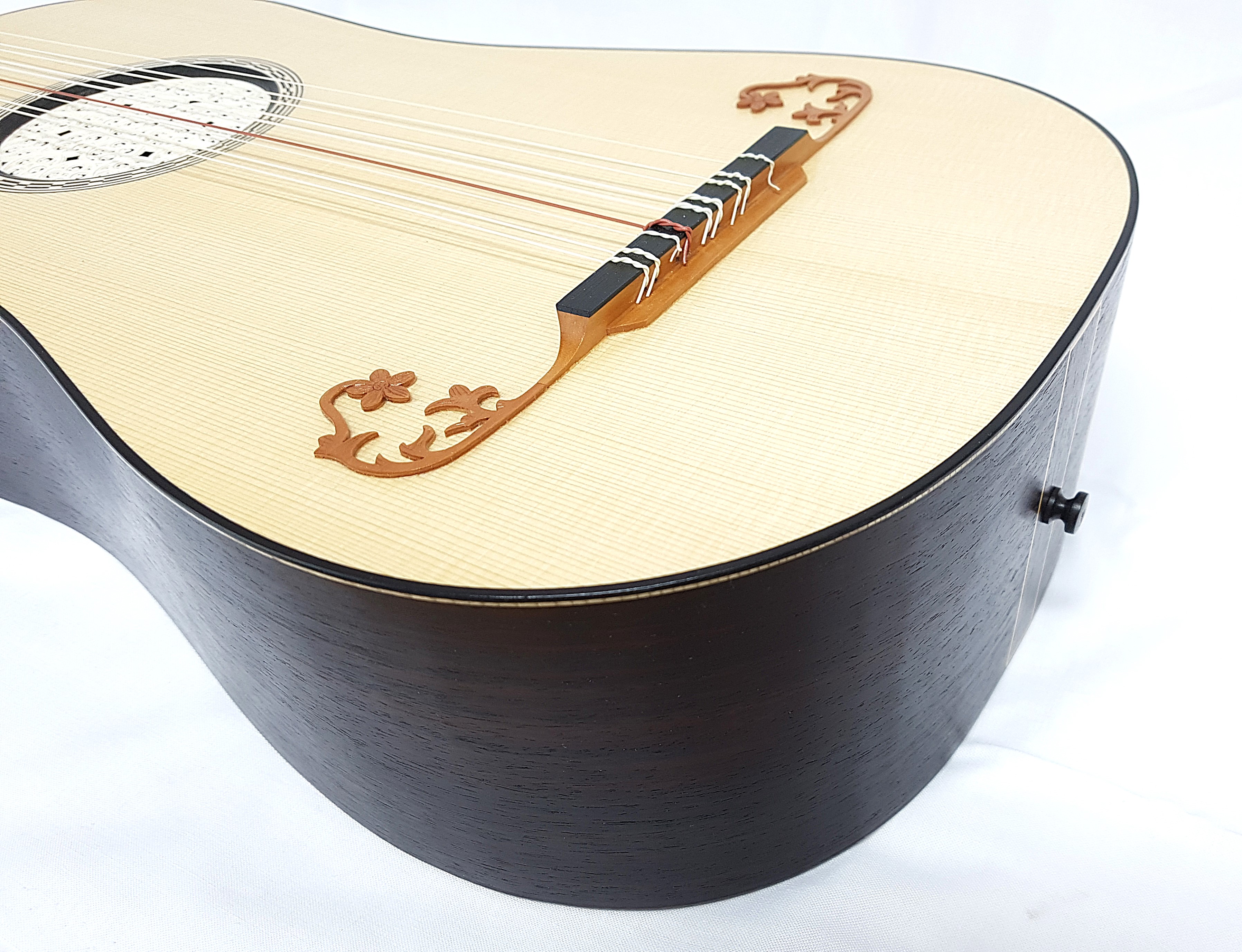 body in curly or birds-eye maple, rosewood or according to individual customer preferences with or without purfling