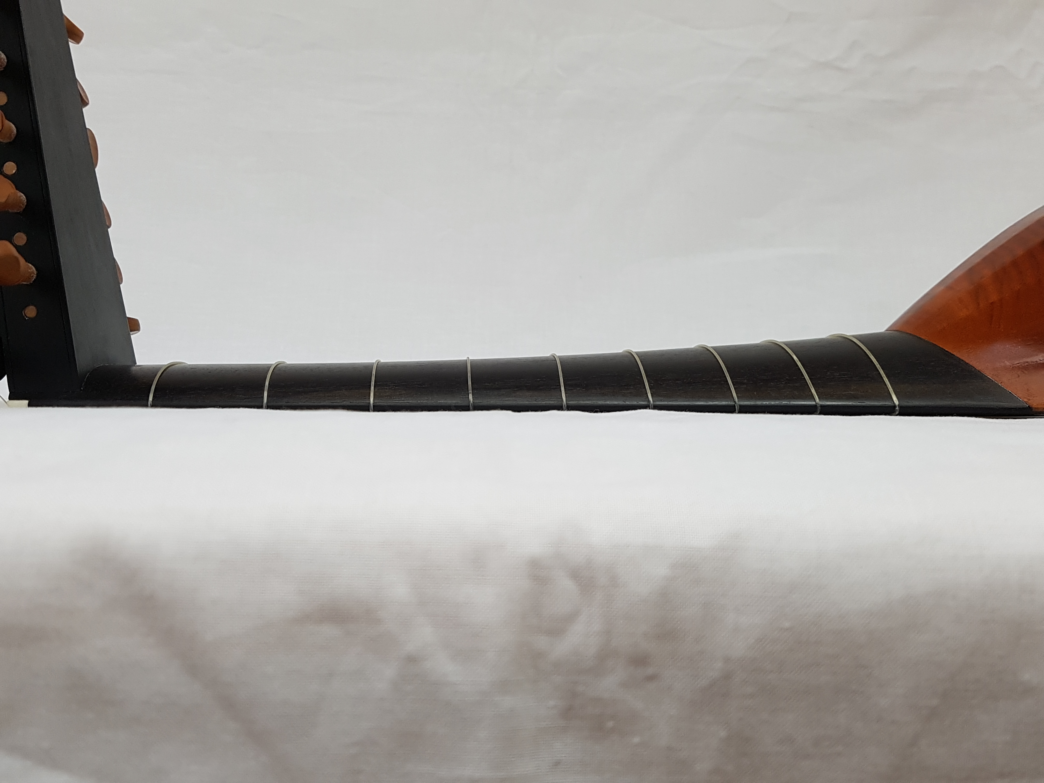 During the first winter, the heating season (due to the resulting lower humidity) may cause a change in the string action. Within two years of purchase, neck dressing in my workshop is included in the price, subject to prior notification.